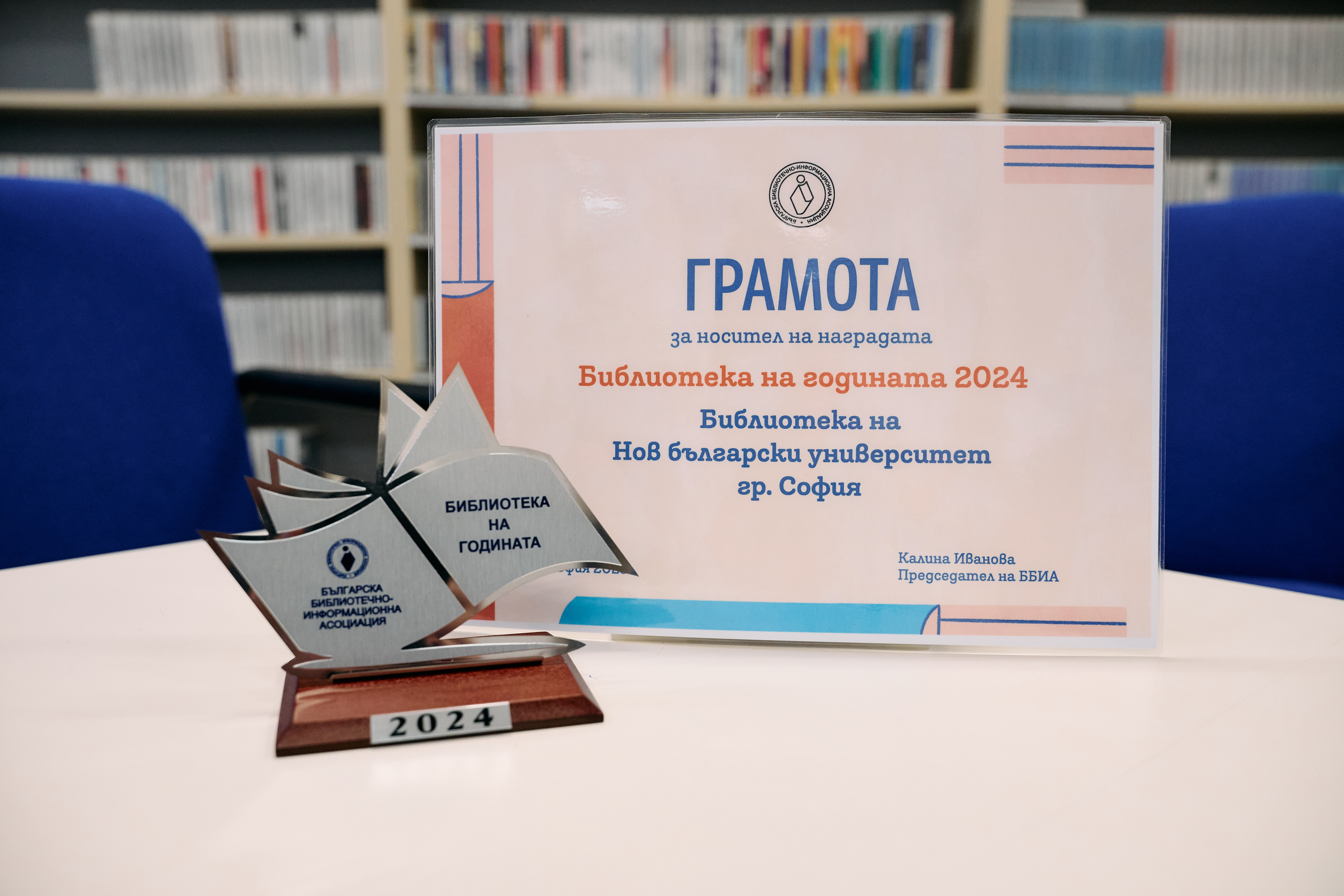 На официалното откриване на 19-ата Национална библиотечна седмица Българската библиотечно-информационна асоциация (ББИА) обяви годишните си награди. Библиотеката на Нов български университет беше удостоена с наградата „Библиотека на годината“ за 2024 г. Призът връчи Кирил Вълчев, генерален директор на БТА на д-р Радостина Тодорова, директор на Библиотеката на НБУ.