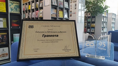Библиотеката на Нов български университет с Грамота за успешно партньорство в дейността на Столична библиотека