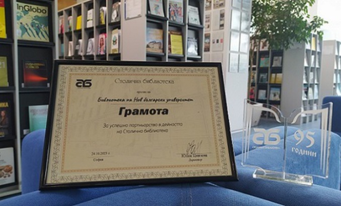 Библиотеката на Нов български университет с Грамота за успешно партньорство в дейността на Столична библиотека
