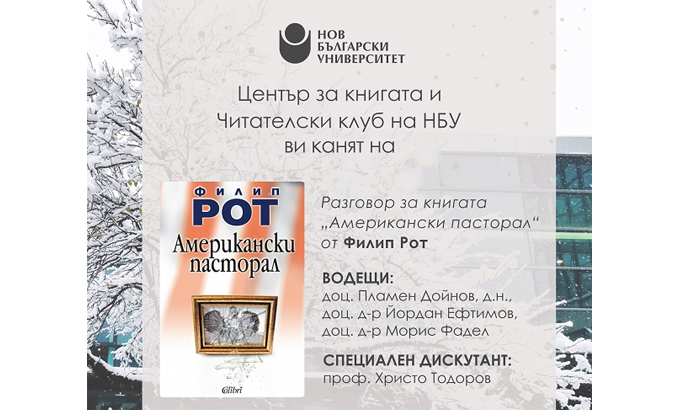 Начало Център за книгата Новини и събития Новини и събития 17 Декември 2018 Читателски клуб на НБУ: Разговор за книгата „Американски пасторал“ от Филип Рот Аз чета