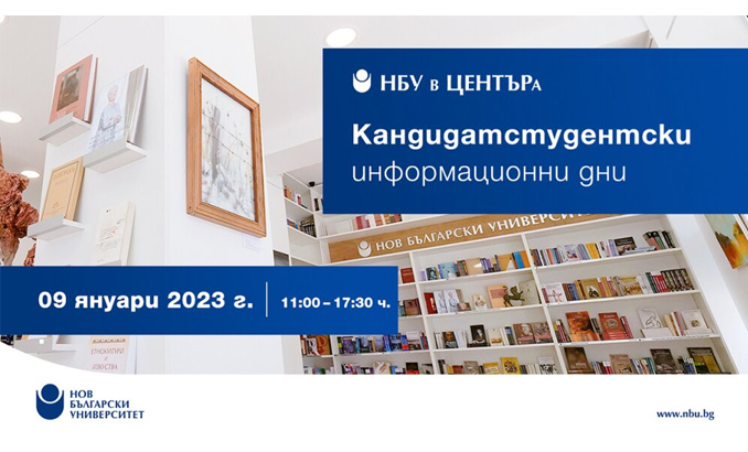 Начало Център за книгата Новини и събития Новини и събития 09 Януари 2023 Информационен ден за кандидат-студенти На 09. януари 2023 г. в книжарница и галерия „НБУ в ЦЕНТЪРа“ от 11.00 ч. до 17.30 ч. allevents.in