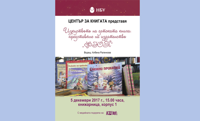 Начало Център за книгата Новини и събития Новини и събития 04 Декември 2017 Изкуството на детската книга: Представяне на издателство „Фют” Културни новини Аз чета allevents.in