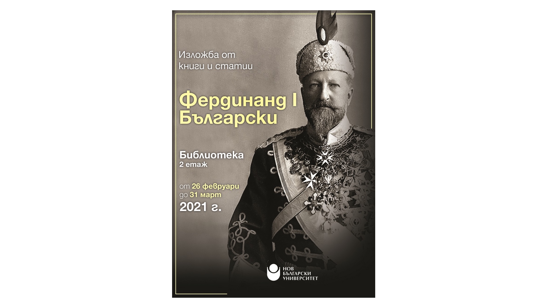 Изложбата представя книги и статии от библиотечните колекции на НБУ, свързани с живота и дейността на най-дълго управлявалия монарх в Третата българска държава и неин пръв, провъзгласен за цар, владетел - Фердинанд I Сакскобургготски. Историческото му дело се олицетворява най-ярко от обявяването на независимостта на страната от Османската империя на 22 септември 1908 г., което е заветна национална цел след Освобождението на България и Съединението на княжеството с Източна Румелия през 1885 г. Изложбата се фокусира не само върху образа на монарха, но и поставя своеобразен акцент на личния свят на Фердинанд – семейството му и неговата страст към ботаниката, орнитологията, ентомологията и филателията, и свързаните с тях научни и колекционерски приноси.