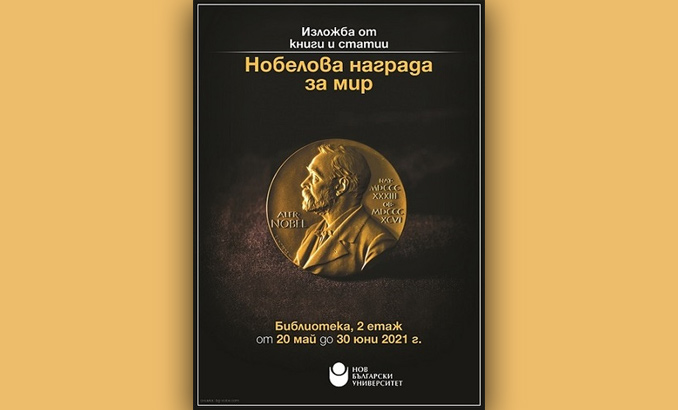 Начало Център за книгата Новини и събития Новини и събития 20 Май 2021 Изложба „Нобелова награда за мир“ 20 май - 30 юни 2021 г., Библиотека на Нов български университет Културни новини