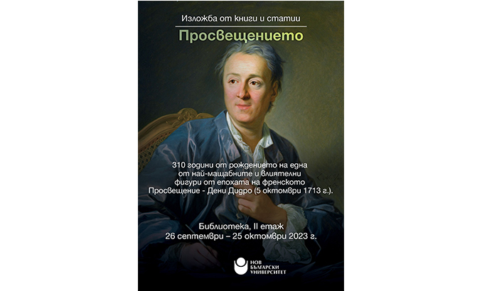 Едва ли има епоха от развитието на човешката мисъл и култура, която да е оказала по-голямо влияние на съвремието ни от Просвещението. Чествайки последното, ние всъщност честваме това, което сме - в цялата комплексна многопластовост и сложност на историческото време-пространство, в което се намираме. От една страна Просвещението е сложило края на „мрачните“ Средни векове и е поставило началото на „опитомяването/колонизирането на света“ от човека с всичките му мистерии, „подводни камъни“ и ирационални тайни, принудило ни е да бъдем „разумни“, образовани, хуманисти, политически и граждански активни с произтичащите от това равни права и задължения в рамките на обществения организъм, от друга ни е направило секуларни (без вероятно да ни предостави равна по метафизична сила „вяра, надежда и любов“, което ще накара например радикален персоналист като Бердяев да мечтае за „Ново Средновековие“) и шеметно ни е запратило във възходите и паденията на либералните и революционни утопии, водовъртежа на националните войни и подмоли, в трагично красивата и катастрофична реалност на „свободата, равенството и братството“. Не можем да отречем обаче едно – просвещенският проект ни е научил да мислим критично, на всяка цена и въпреки всичко да търсим начини и конструираме стратегии за подобряване на живота тук и сега, рационално или не - да вярваме в себе си и прогреса, да бъдем смели, да отправяме и приемаме предизвикателства към и от „сърцето на мрака“, така често съвпадащо с тревожния съвременен пулс на собственото ни битие. Не на последно място в роден контекст „векът на разума и философите“ е вдъхновил в немалка степен българското Възраждане, заради което не само сме оцелели като нация, но и благодарение на същото ултимативно е бил зададен хоризонта на собствената ни модерност. Изложбата в Библиотеката на НБУ се организира по повод 310-годишнината от рождението на една от най-мащабните и влиятелни фигури от епохата на френското Просвещение - Дени Дидро (5 октомври 1713 г.).