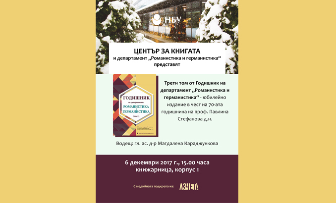 Начало Център за книгата Новини и събития Новини и събития 06 Декември 2017 Юбилейно издание в чест на 70-годишнината на проф. Павлина Стефанова Културни новини Аз чета