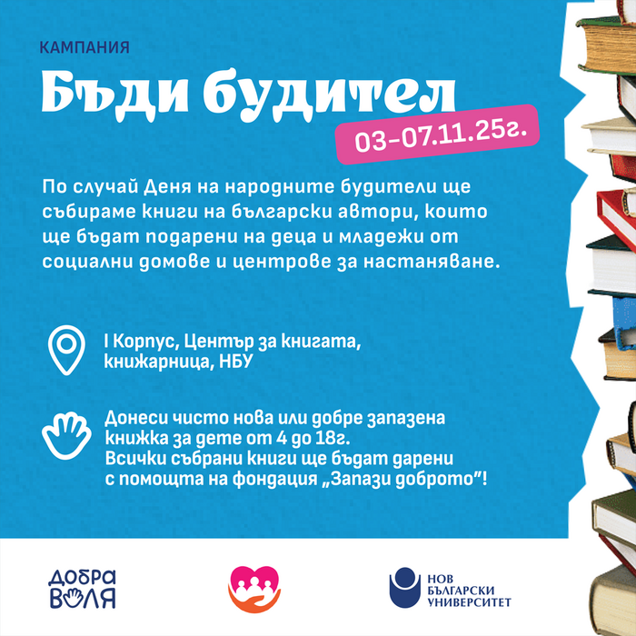 Начало Център за книгата Новини и събития Новини и събития 03 Ноември 2025 НБУ събира книги за деца от социални домове по повод Деня на будителите ovchakupel.info