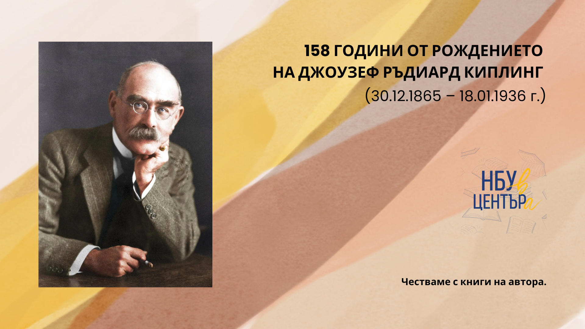 Джоузеф Ръдиард Киплинг (30.12.1865 – 18.01.1936 г.) ще бъде представен от доц. д-р Йордан Ефтимов, преподавател в департамент „Нова българистика“ на НБУ, във видео, което ще се излъчи във фейсбук страницата на „НБУ В ЦЕНТЪРа“ на 30 декември 2023 г. в 10.00 ч.