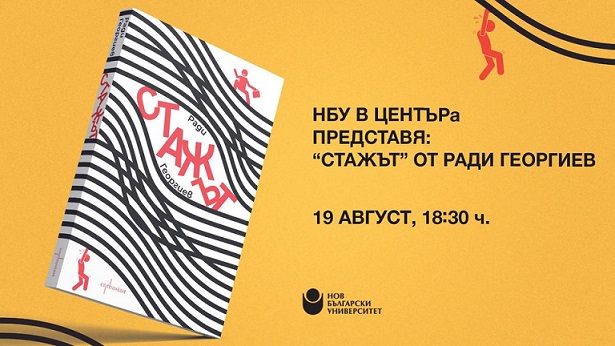 Начало Център за книгата Новини и събития Новини и събития 09 Август 2021 НБУ в ЦЕНТЪРа представя: „Стажът“ от Ради Георгиев 19. август 2021 г., 18.30 ч. Авторът е възпитаник на Нов български университет и има над 17-годишен опит в областта на PR и маркетинг stayhappening.com