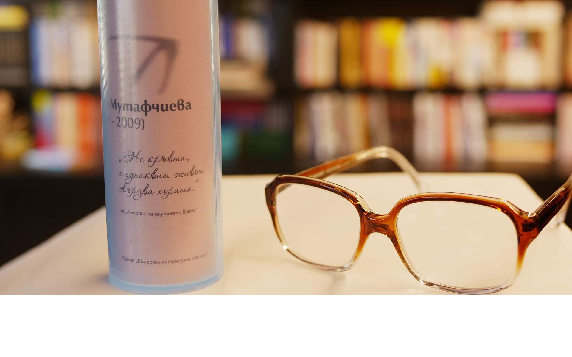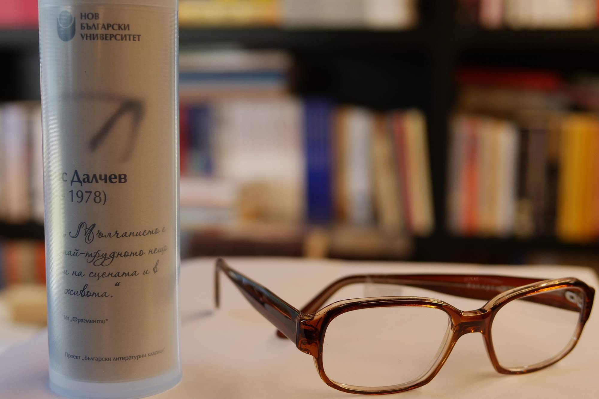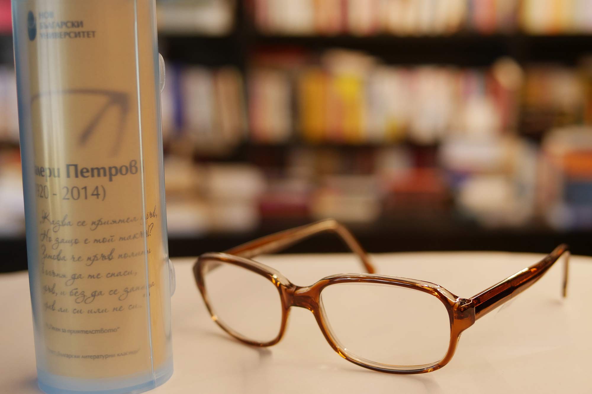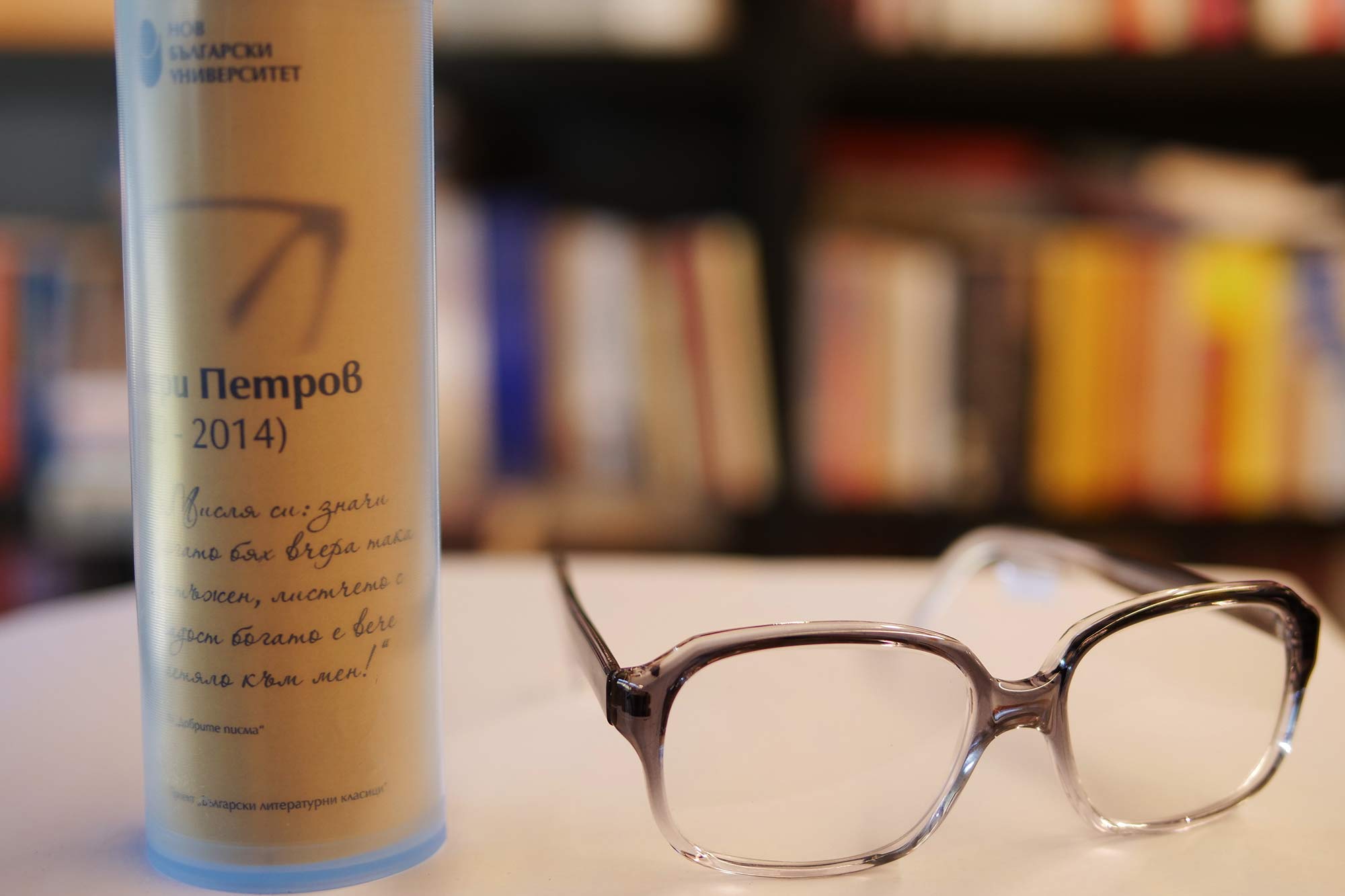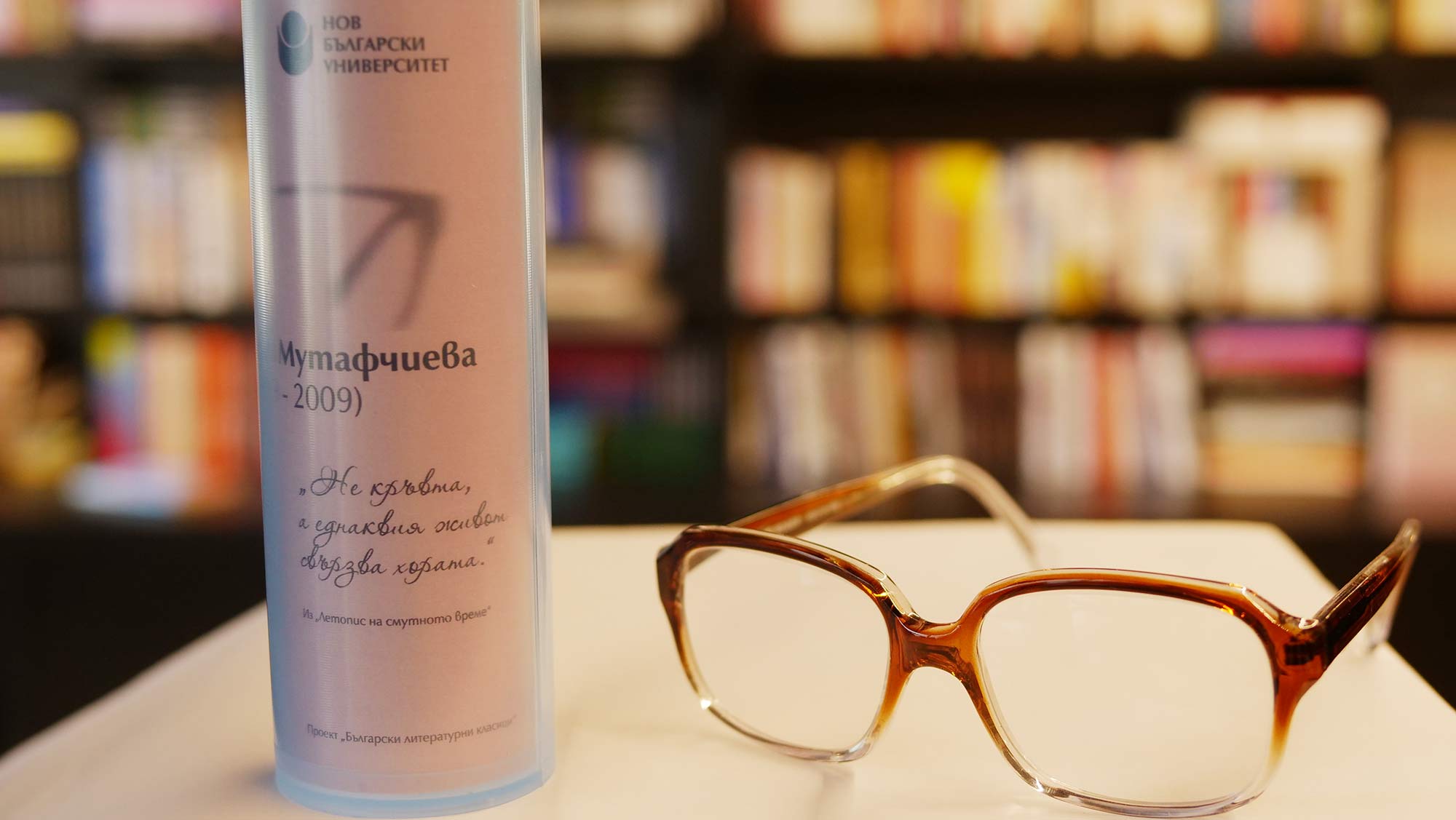 По повод световния Ден на книгата и авторското право Нов български университет продължава да развива инициативата, чийто нов етап е насочен към младите хора. Те могат да си изберат очила без диоптър, с антирефлексни стъкла и лещи, които защитават окото. Очилата, копия на носените от българските класици, могат да бъдат закупени от книжарниците на НБУ, както и от електронната книжарница на университета. Всеки закупен чифт дава възможност за ползване на 10% отстъпка при покупка на 6 избрани заглавия от български автор.