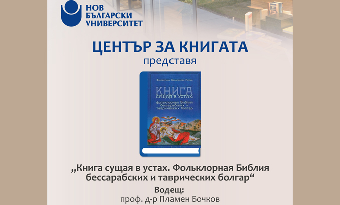 Начало Център за книгата Новини и събития Новини и събития 08 Октомври 2018 Представяне на „Книга сущая в устах. Фольклорная Библия бессарабских и таврических болгар“ Аз чета
