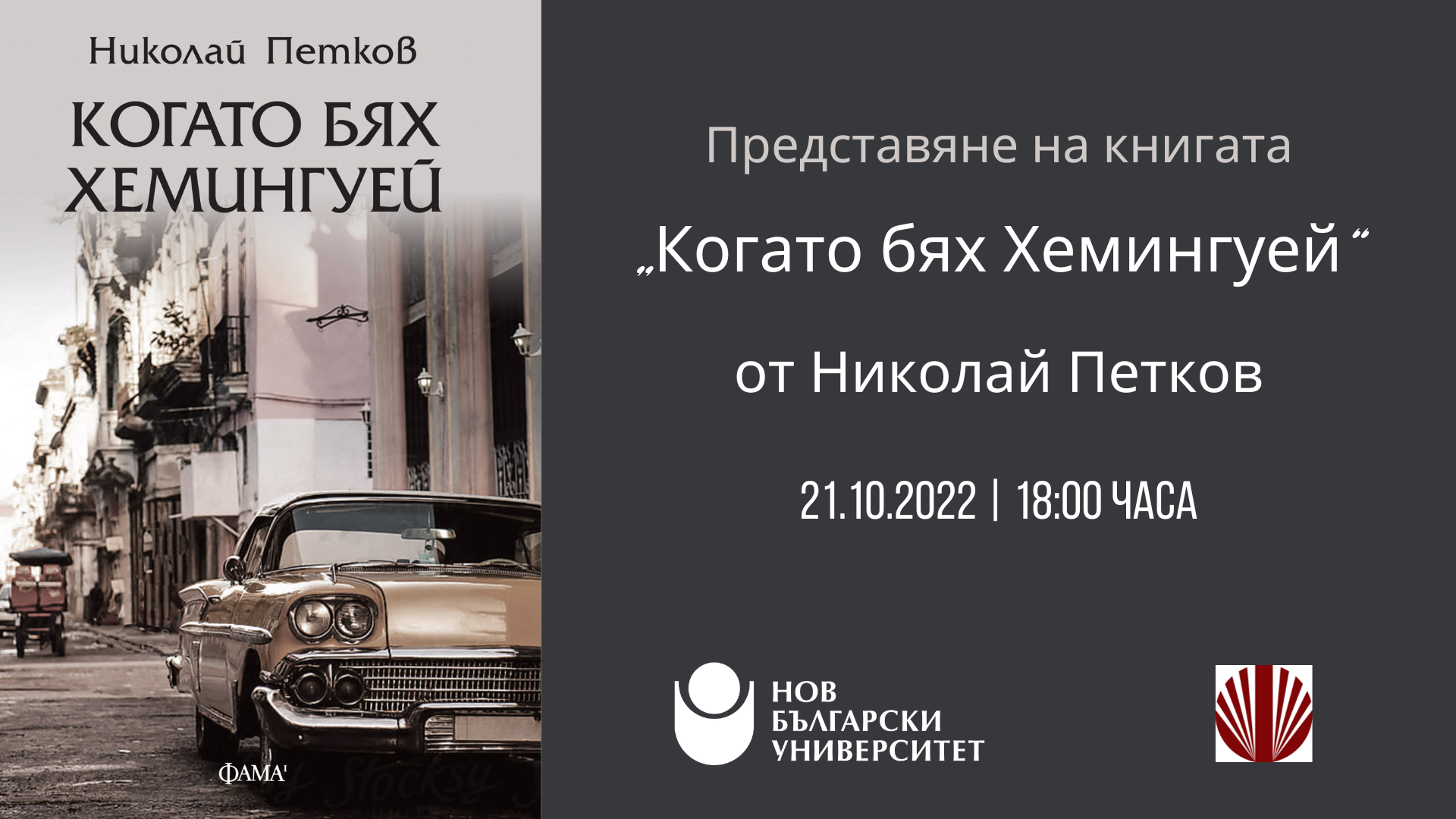 Представяне на книгата „Когато бях Хемингуей“ от Николай Петков