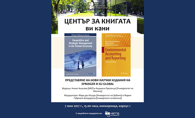 Начало Център за книгата Новини и събития Новини и събития 05 Юни 2017 Представяне на научни издания на Springer и IGI Global в Центъра за книгата на НБУ Аз чета