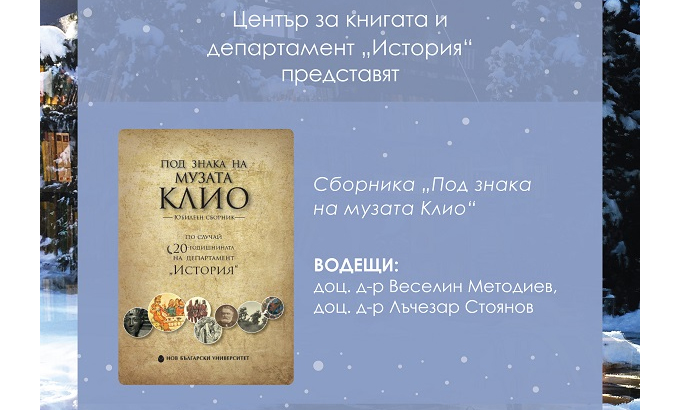 Начало Център за книгата Новини и събития Новини и събития 10 Декември 2018 Представяне на сборник „Под знака на музата Клио“ – юбилеен сборник по случай 20-годишнината на департамент „История“ на НБУ Аз чета