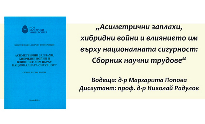Начало Център за книгата Новини и събития Новини и събития 05 Ноември 2018 Представяне на сборник с доклади от Международна научна конференция „Асиметрични заплахи, хибридни войни и влиянието им върху националната сигурност“ Аз чета
