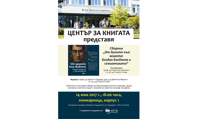 Начало Център за книгата Новини и събития Новини и събития 12 Юни 2017 Представяне на сборника „От думите към живота: Богдан Богданов и семиотиката“ Културни новини allevents.in
