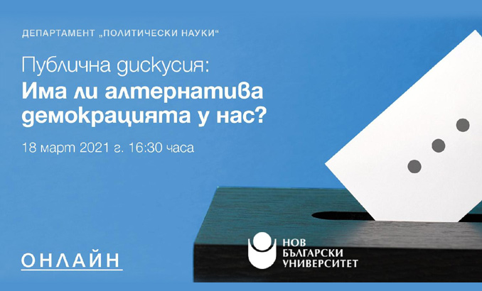 Начало Център за книгата Новини и събития Новини и събития 11 Март 2021 Публична дискусия „Има ли алтернатива демокрацията у нас?“ Департамент „Политически науки“ и Център за книгата отправят покана за участие на 18. март 2021 г. от 16.30 ч. allevents.in