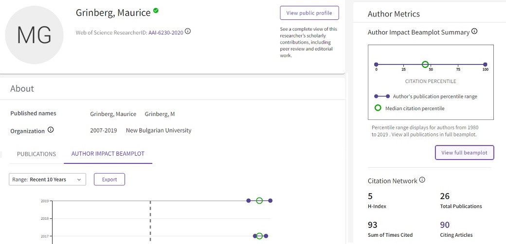 • Publons като място за управление на публикации в Web of Science.