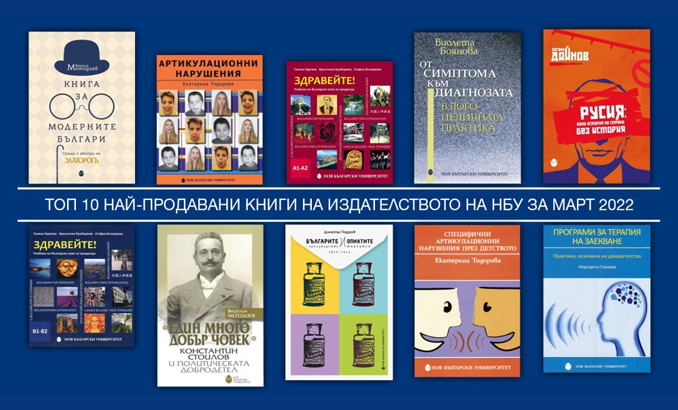Начало Център за книгата Новини и събития Новини и събития 05 Април 2022 Топ 10 на най-продаваните книги на Издателството на Нов български университет Център за книгата представя най-купуваните книги на Издателството на Нов български университет през март 2022 г. myPR